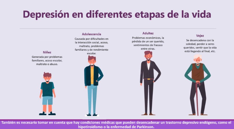 La depresión se origina en la interacción de factores biológicos, psicológicos y sociales. Quienes han atravesado circunstancias difíciles —como desempleo, duelo o experiencias traumáticas— tienen un riesgo mayor. Una vez instaurada, la depresión puede generar aún más estrés, problemas en la vida diaria y un círculo de empeoramiento.